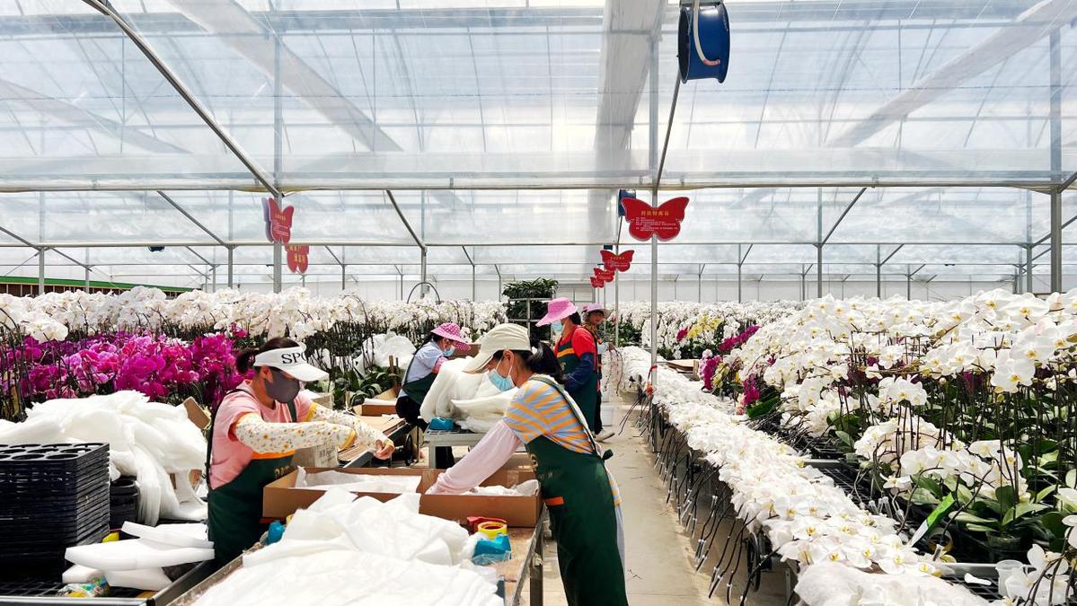产业升级推动“产学研教销”一体化。90后海归严鸿返乡后,攻克组培技术,成功培育“万花似玉”等数十个新品种,其中3个获国家认证。其创新的染色白兰单价从16元跃升至200元,月销售额稳定破百万。蝴蝶兰产业园与樱花园、桫椤谷形成全域旅游带,周末游客络绎不绝。