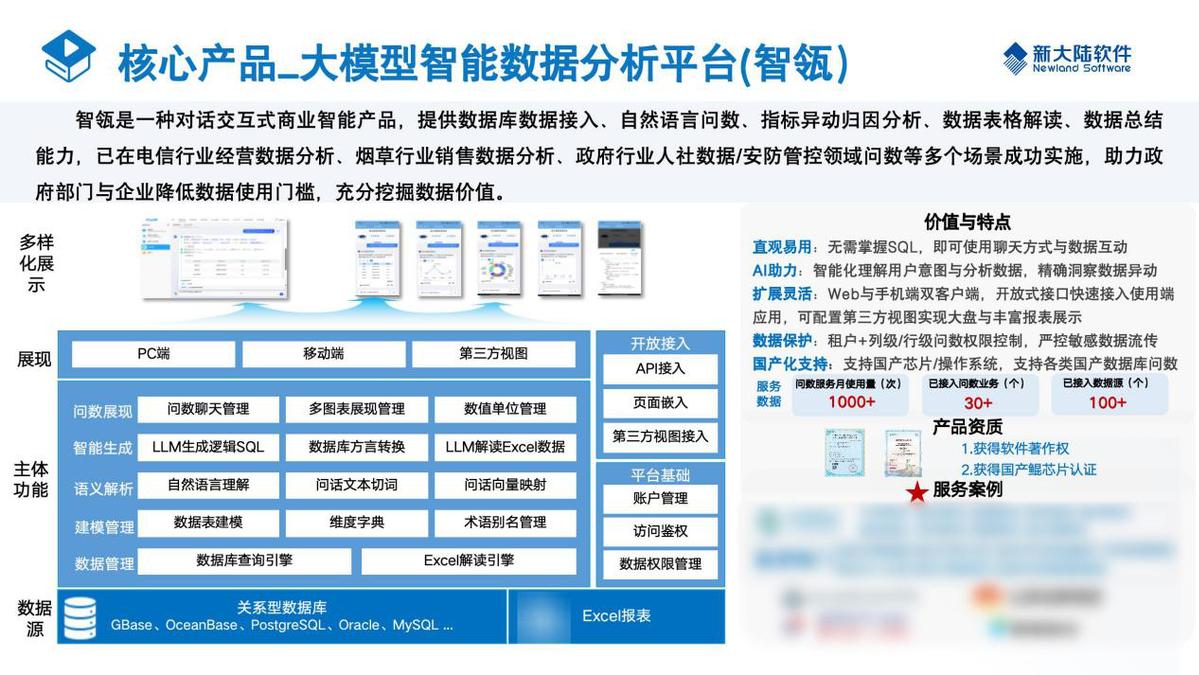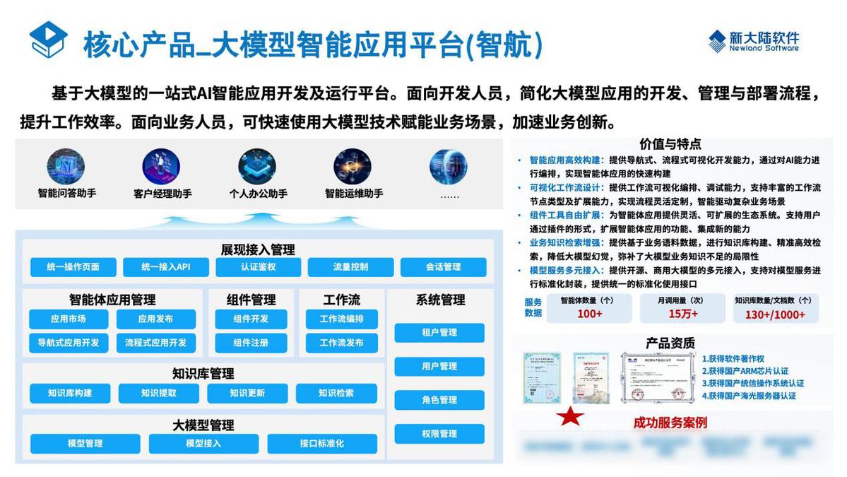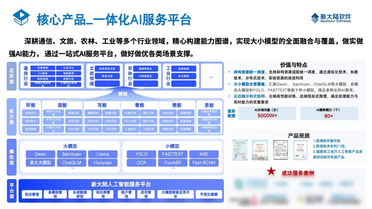 新大陆软件公司长期专注于人工智能等前沿技术研发,拥有一支高素质的研发团队,在人工智能领域取得了一系列重要成果。公司自主研发的人工智能服务平台以及AI应用系列产品,已广泛应用于通信、金融、政务等多个领域,为客户提供高效、智能的解决方案,显著提升了客户企业运营效率和服务质量。