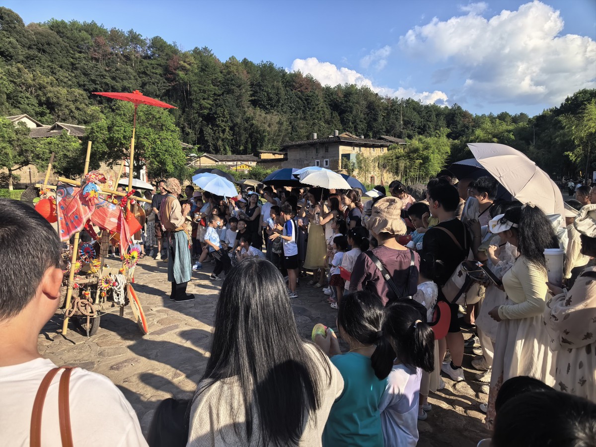 作为世界文化遗产地,永定土楼在本年度国庆档推出“非遗文化狂欢节”系列活动,形成“日间演艺+夜间光影+互动体验”的全时段文旅供给体系。福建土楼王子景区每日上演高跷戏、中幡表演、客家舞龙等非遗项目,7天累计开展420场核心演艺,其中《客家舞龙》表演单日吸引超3万人次驻足观赏。初溪土楼古村落的“晒金秋”活动通过“晒物—晒景—晒文化”三维展示农耕文明,夜幕降临时分的“千灯放飞”仪式更以3D裸眼灯光秀演绎“众星拱月”奇观,成为游客争相打卡的网红场景。