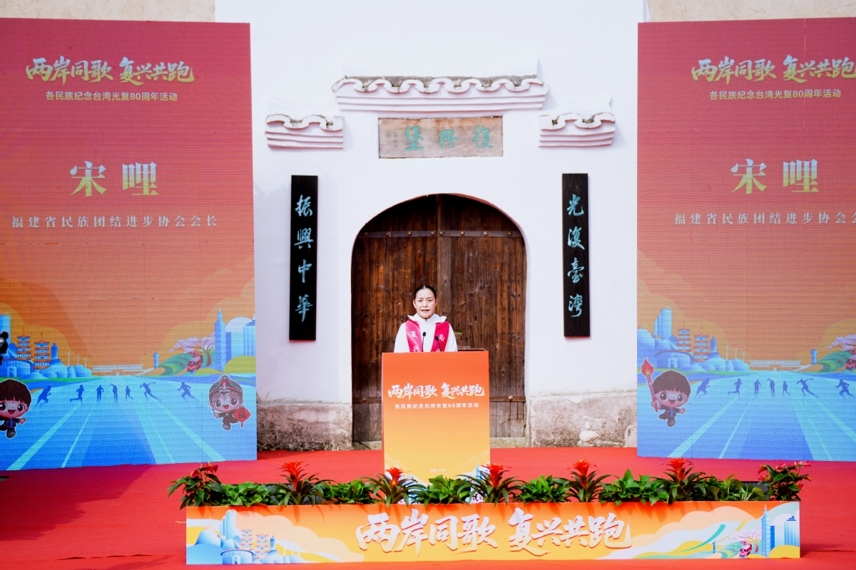 2025年是中国人民抗日战争暨世界反法西斯战争胜利80周年,也是台湾光复80周年。在全国人大常委会通过的首个台湾光复纪念日之际,10月25日,由福建省民族团结进步协会、台湾少数民族乡镇市长总会共同发起的“两岸同歌·复兴共跑”——各民族纪念台湾光复80周年活动在福建永安市、台湾宜兰县同步举行,以歌声凝聚精神,以奔跑昭示信念,以宣言坚定意志。两岸各族同胞、师生代表、专家学者等200余人在抗日复台历史见证地永安复兴堡参加活动。
