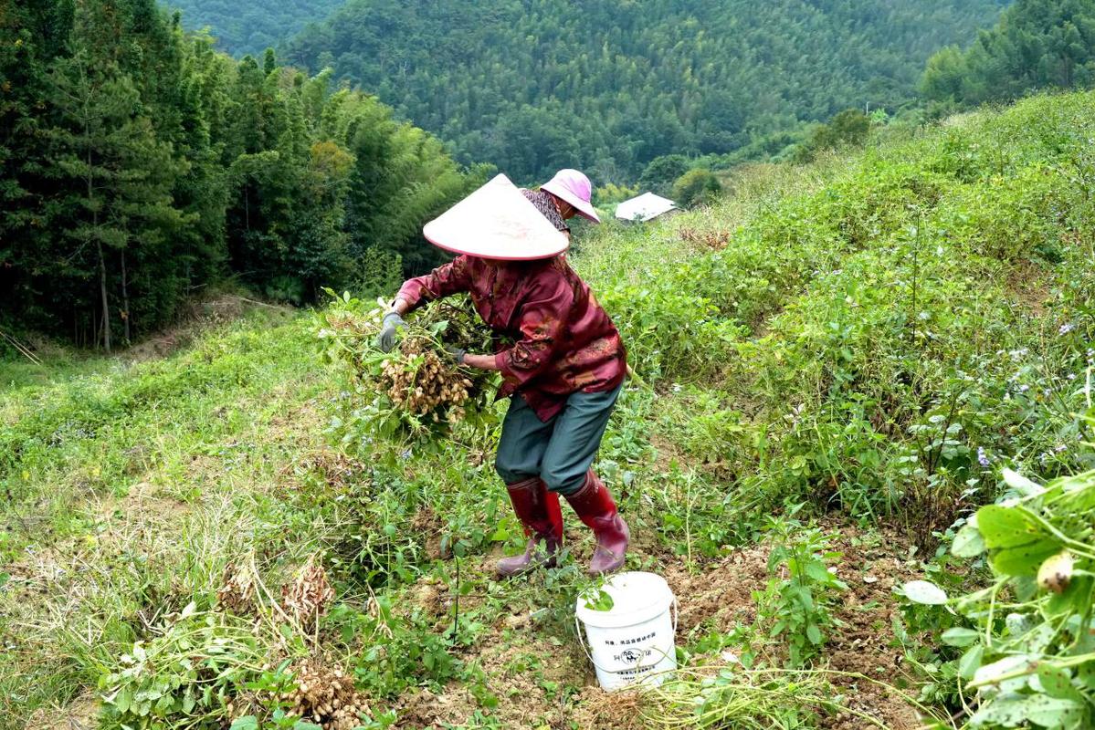 11月4日,走进永定区培丰镇上和村的花生种植基地,连片的高山梯田花生田郁郁葱葱,村民们微微弯腰,熟练地将花生株连根拔起。翠绿的花生秧被轻轻拔出,根部挂满了沉甸甸、圆润饱满的花生果,轻轻一抖,附着在花生上的泥土便簌簌落下,露出色泽鲜亮的花生,现场一片繁忙而喜悦的景象。