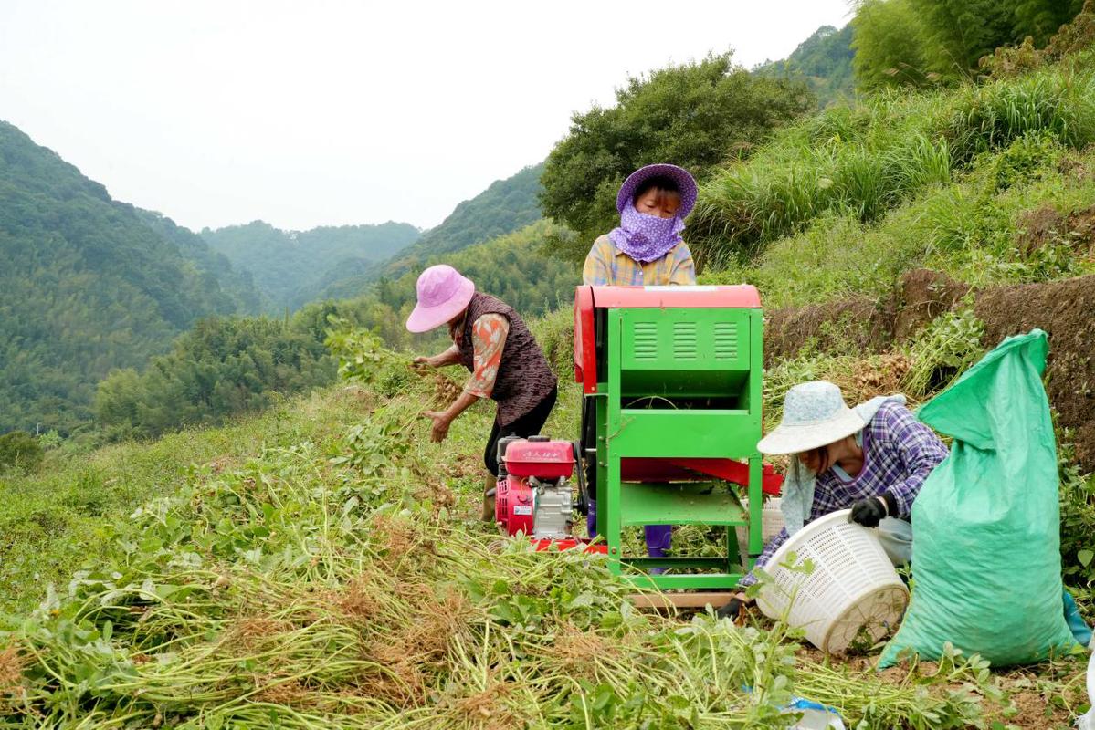 在采收现场,除了农户们人工采摘的忙碌场景,部分种植大户还引入了小型花生脱粒机。只见花生果与秧苗迅速分离,原本需要大量人力和时间完成的脱粒工作,如今在机器的帮助下,变得轻松又快捷。