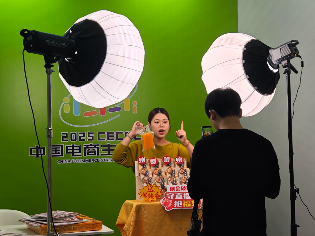 电商主播大赛现场,选手们正积极表现。(邓佳惠 摄)