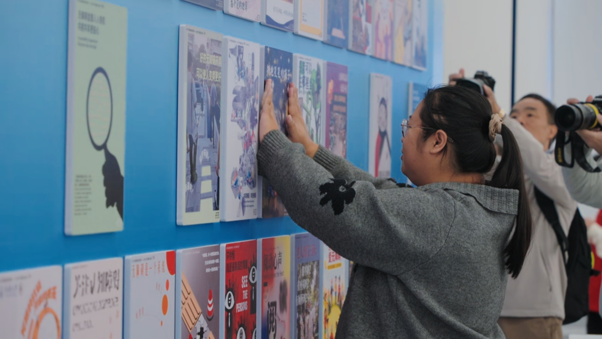 活动现场,在榕台胞、高校教师林芳槿正为学生作品拍照留念。她指导的多幅海报成功入选展览。“我告诉学生:‘用心看见需求’。这次创作不仅是一次艺术表达,更是一场关于社会包容性的深度对话。两岸青年共同思考如何让城市更有温度,意义非凡。”林芳槿说。