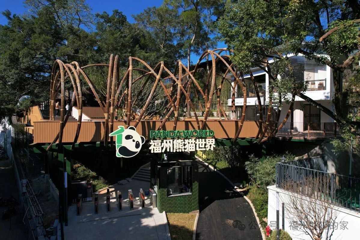 全新的福州熊猫世界,也是一处融合了观赏、休闲、科普与文化的综合性体验空间。设计独特的“落日栈道”以透明玻璃廊桥形式,打造出“空中俯瞰”熊猫的绝佳视角。园区南北大门融入了福州地域文化元素与可爱的“大福”IP形象。游客不仅能在升级后的大熊猫科普馆、VR奇境体验屋中深入了解保护知识,还可以在好友手作工坊体验创作乐趣,或在主题茶饮空间、熊猫主题餐厅中小憩。这里处处体现着人与动物、自然与城市的和谐共生理念。