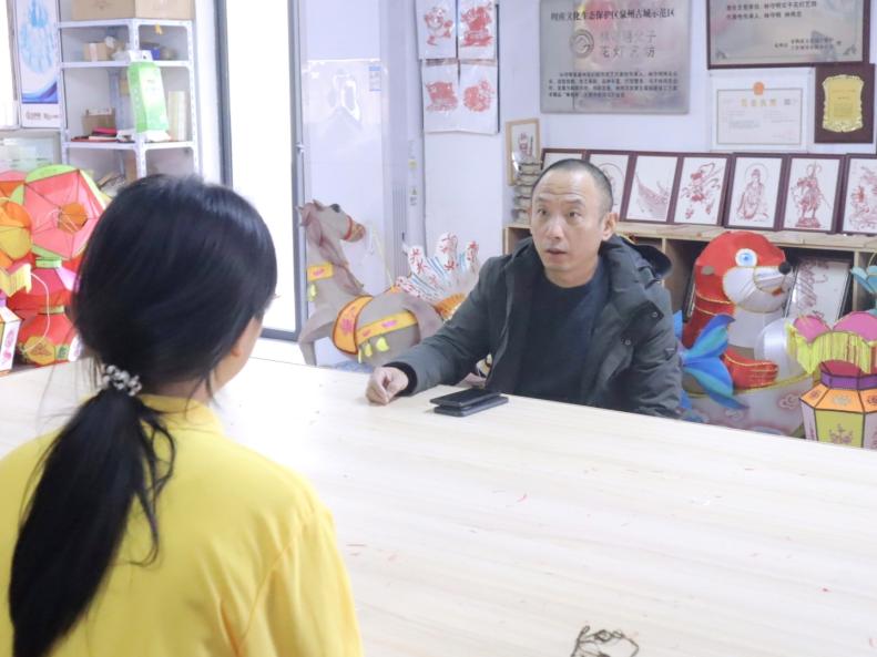实践的核心环节,队员们走进泉州花灯传习所,围绕“非遗创新守护”主题,对泉州花灯市级代表性传承人林伟忠展开专访,几位队员还在其指导下,亲手体验花灯制作流程。“原来花灯不只是节日的装饰,更是闽南人对生活的浪漫表达。”参与制作的队员感慨道。