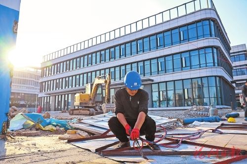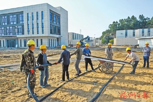 焊花四溅,工人忙碌不停,昨日,走进位于福州新区的阳光学院滨海校区一期工程现场,繁忙的建设场景与“茁壮成长”的教育布局交相辉映。