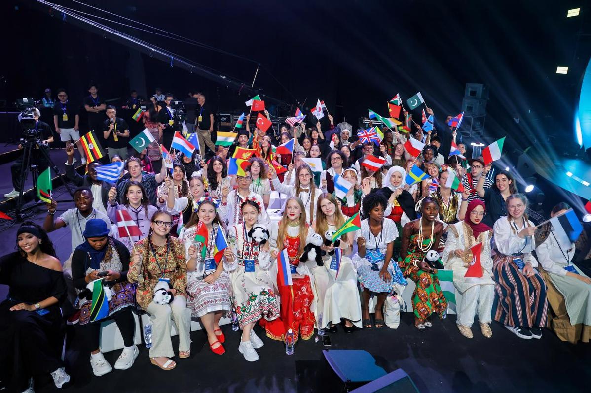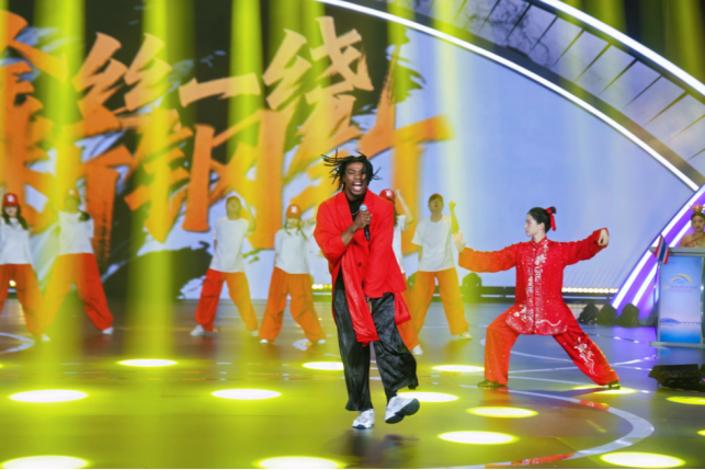 总决赛以短片拉开帷幕,全景式回顾各国选手在北京、福建各地的文化研学旅程,生动呈现跨时空的交流场景。伴随主题曲《梦想起航》的热烈旋律,五位洲冠军携各大洲三十强选手挥舞国旗依次登台,以铿锵有力的参赛宣言展现青春风采,“汉语桥”专属“梦想号”飞艇随之腾空升起,瞬间点燃全场热情,正式开启巅峰对决。