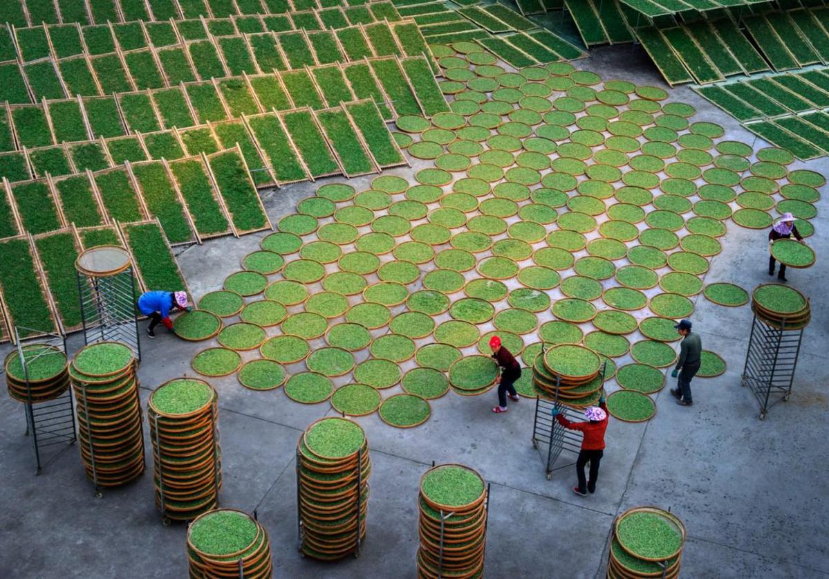 晒茶风景线。(吴爱兰 摄)
