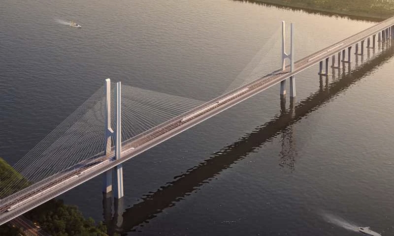 线路所经温州、宁德、福州属于闽东南沿海地区属南亚热带气候,沿线水系发达,需跨越多处河流。其中,由铁四院设计的瓯江公铁大桥北口航道桥为四线高速铁路与六车道城市快速路合建,采用主跨700米公铁平层钢箱-结合梁斜拉桥,是世界上最大跨度的四线铁路平层合建斜拉桥。闽江特大桥采用(147+288+147)米混凝土部分斜拉桥,是我国最大跨度连续梁体系铁路部分斜拉桥。飞云江大桥为时速350公里独塔结合梁斜拉桥设计,设计团队采用了三维参数化设计技术,利用了多种空间有限元分析软件对重要节点开展了计算分析,确保了桥梁结构安全及设计效率。