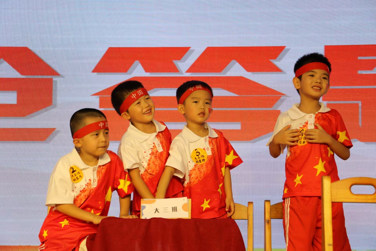 各年段还开展了特色鲜明的主题互动:大班举办“我是爱国小达人”知识竞赛,通过问答、视听、图文辨识、合作拼图等趣味形式,让爱国主义教育变得生动有趣;中班开展“唱支红歌给您听”亲子红歌会,《红星闪闪》《祖国祖国我们爱你》等经典旋律回荡园所,亲情与爱国情在此刻交融;小班萌娃则用稚拙的歌声和手工作品,为祖国妈妈送上纯真祝福。