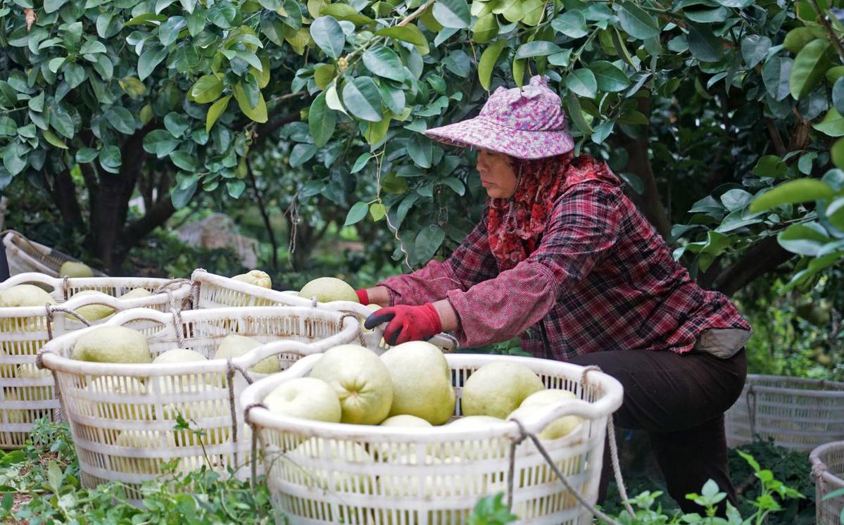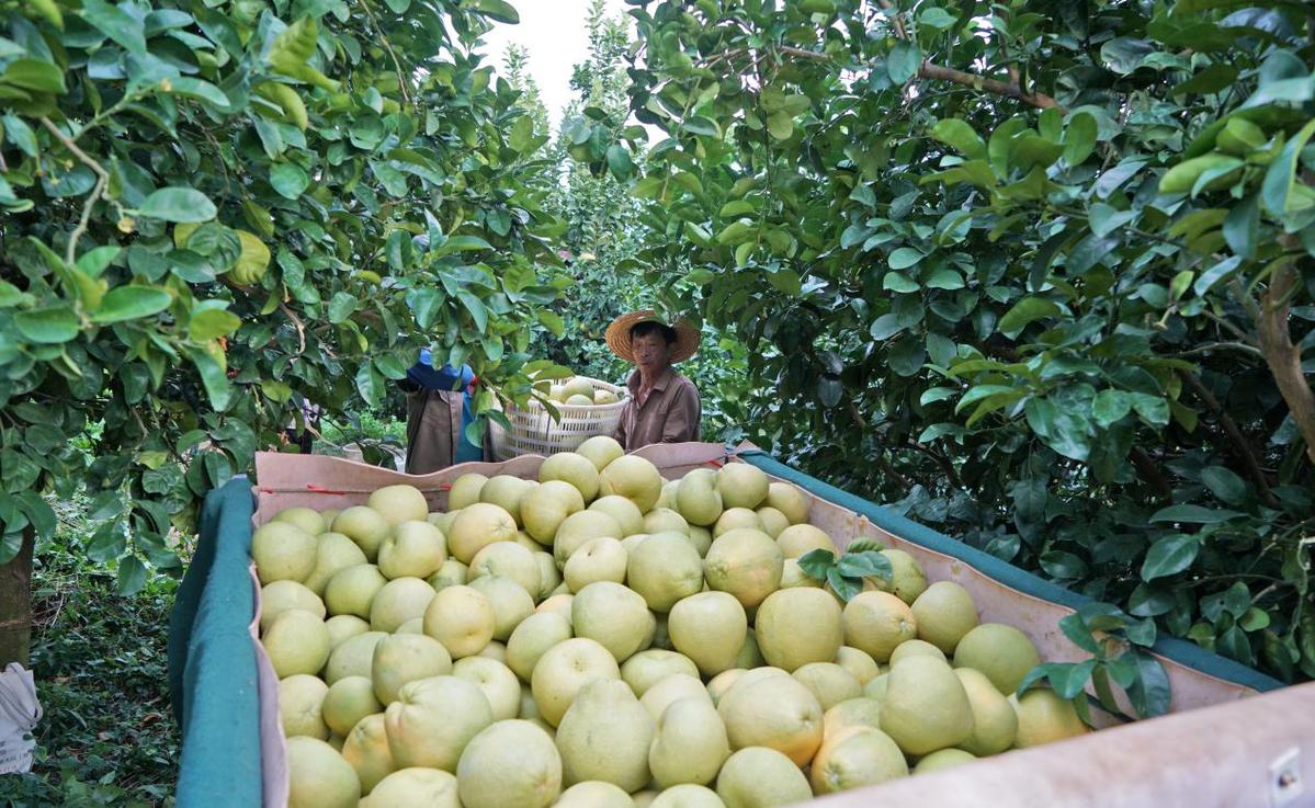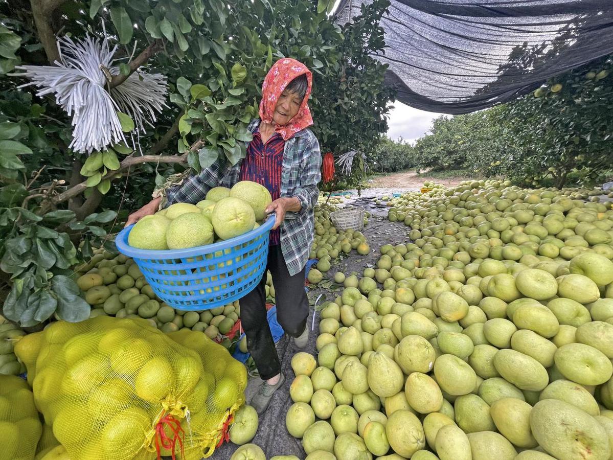 连日来,泉港区涂岭镇文旦柚迎来采摘销售旺季。在泉港区涂岭镇松园村洋林文旦柚场213亩果园内,7000多棵柚子树郁郁葱葱,累累硕果垂挂枝头,清甜的柚香扑鼻而来。果农们分散园内忙碌采摘、挑拣、装框、包装、运送,一派丰收喜悦的忙碌景象。据悉,自9月7日以来,该果园文旦柚采摘量已达100吨以上,主要销往周边县市区。