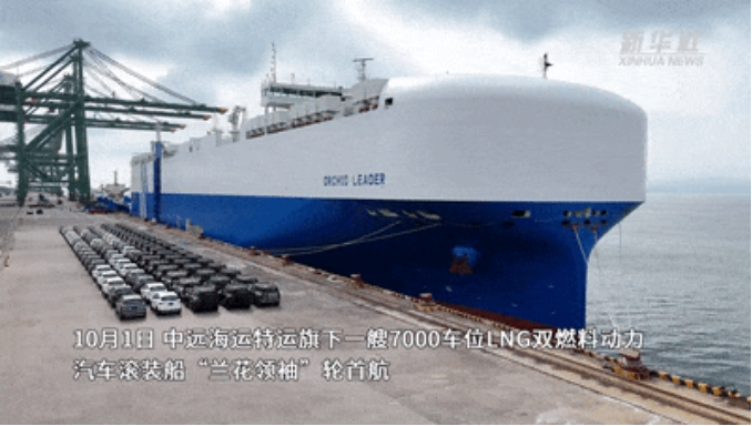 10月1日,中远海运特运旗下一艘7000车位LNG双燃料动力汽车滚装船“兰花领袖”轮首航,承载近1700辆商品车扬帆出海,驶向阿联酋、科威特、伊拉克等中东地区国家。此举正式拉开了“福州一波斯湾”滚装航线通航的序幕,为国产车畅销全球再辟一条海上通途。