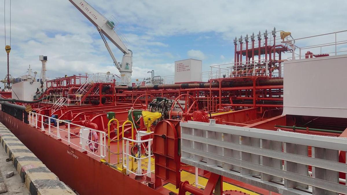 上午九时许,记者在南埔镇泉州港务集团权属肖厝公司港口看到,6000吨的大豆油通过管道注入“美赞”轮船舱,据悉,此次出口的大豆油全部由泉港本地粮油企业生产,依托肖厝港完善的仓储、灌装和物流体系,实现了从原料加工到出口运输的无缝衔接。