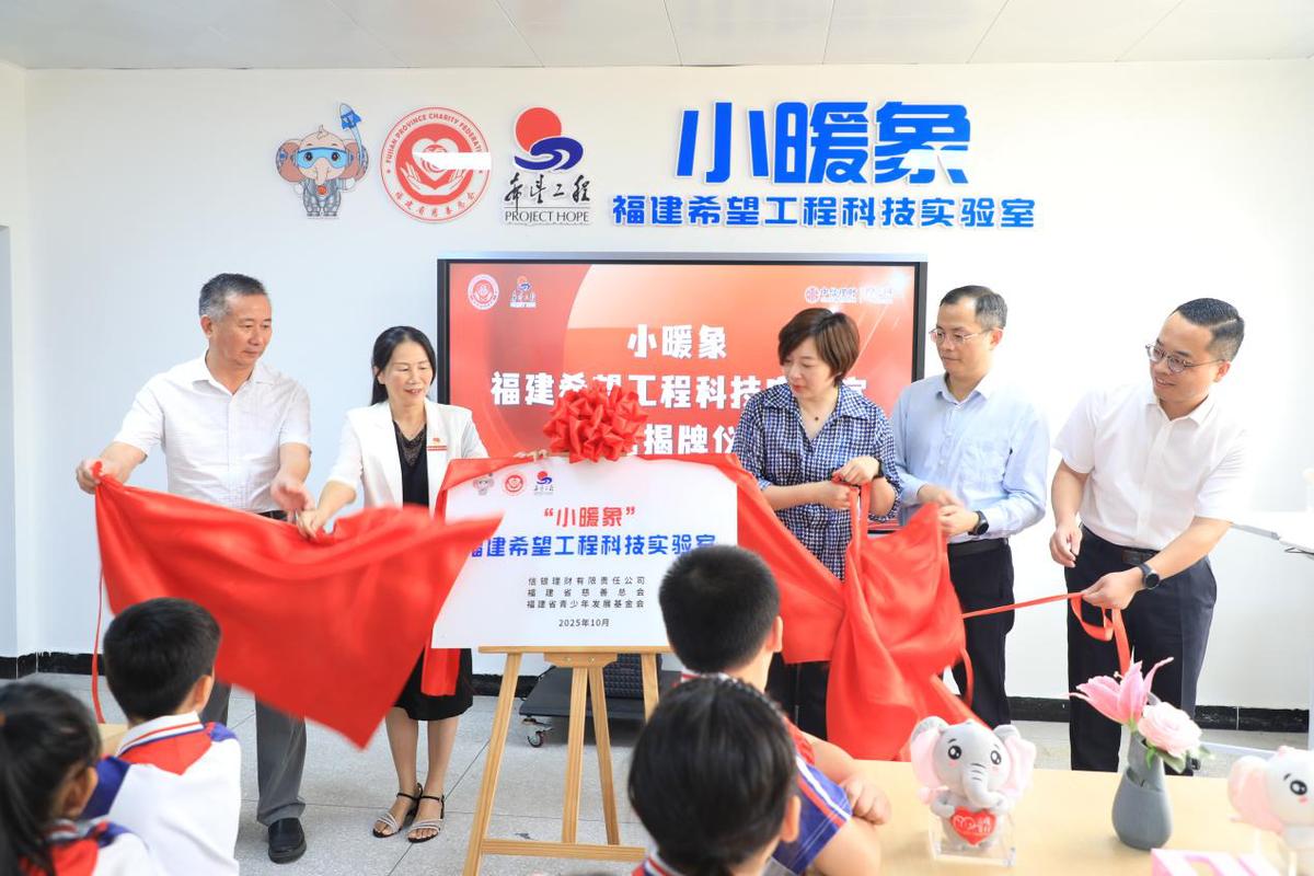 近日,由共青团福建省委、福建省慈善总会、信银理财有限责任公司、中信银行福州分行、福建省青少年发展基金会联合主办,共青团福州市委承办的“小暖象”福建希望工程科技实验室捐赠揭牌仪式在福州市台江第六中心小学举行。福建省慈善总会副会长廖长桂,团省委副书记邵明松,中信银行福州分行党委委员、行长助理翁建枝,信银理财有限责任公司综合部总经理王倩出席活动,福州团市委、台江区政府、台江团区委有关同志及福州市台江第六中心小学师生代表参加活动。