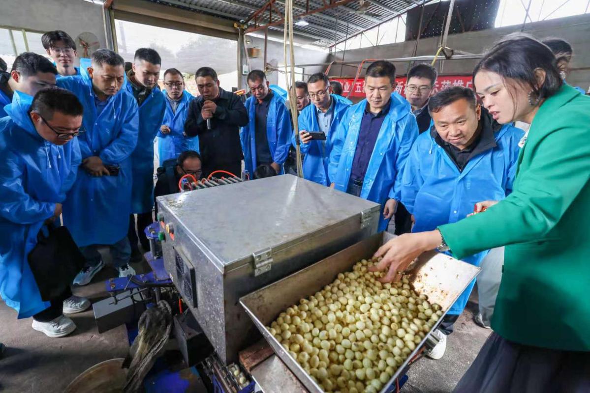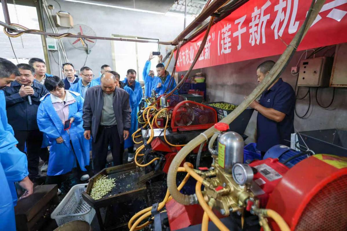当日,武夷山市举办2025年农业“五新”(莲茶新机具)示范推广现场观摩活动,旨在提高农业生产加工机械化水平。来自福建省农业机械推广总站、福建农林大学机电工程学院、福建农林大学机电工程学院、福建农林大学机电工程学院、福建农林大学机电工程学院、福建理工大学机械与汽车工程学院、福建省机械科学研究院、福建省机械科学研究院、福建省机械科学研究院、武夷学院机电工程学院的专家学者、南平市农业机械化发展中心主任,南平市所辖县市区的种植大户、农业机械化发展中心主任等代表40多人参加该活动。与会代表参观了武夷山喊山特产农民专业合作社白莲脱壳一体机、二次去皮机、籽莲通芯机;农业生产烘干机、大型旋耕机、微耕机、高速插秧机及各式包装设备等生产加工和服务设备。
