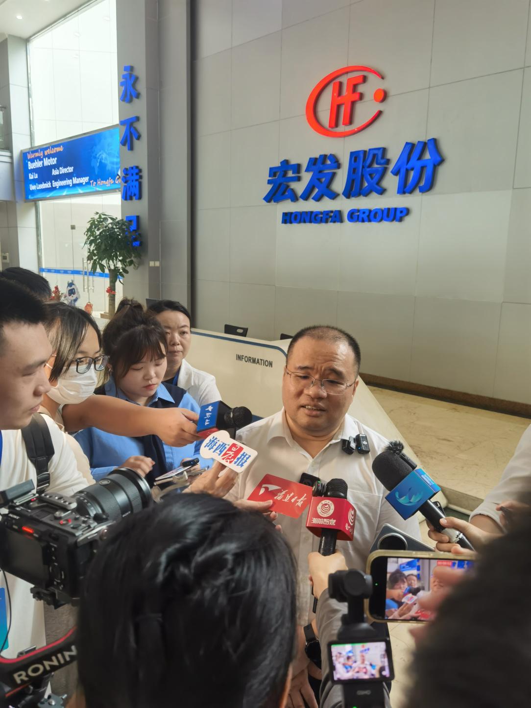 厦门宏发电声股份有限公司副总裁 吴京洧 接受媒体采访(供图)