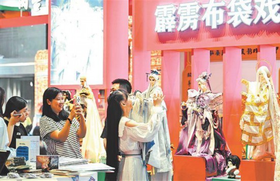 两岸文化的同根同源是文博会展现的主题。在“闽台民艺传承特展”上,闽南布袋木偶戏与台湾“霹雳布袋戏”既同台竞技又形成联动,吸引众多嘉宾和参展商围观。电视剧《沉默的荣耀》热播,火到台湾,剧中同款民俗技艺“狮头旺”在展会期间精彩呈现。