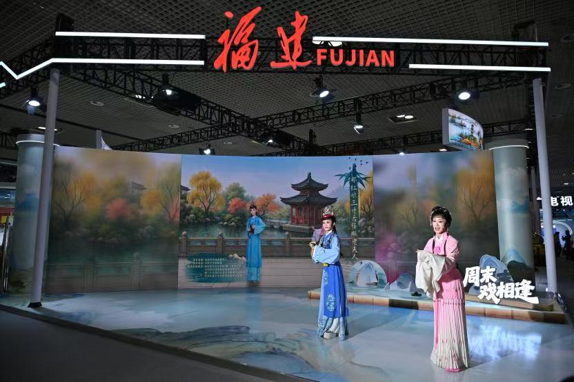 在“非遗+科技”的创新实践中,福建馆让千年文化“活” 出了新模样。主舞台区,福建芳华越剧院带来“数字人+真人”同台演绎的越剧《红楼梦·读西厢》,展现传统戏曲的现代活力;全息投影技术还原闽台缘博物馆馆藏珍品,营造沉浸式观展体验;国家创新平台中,博智机器人生动讲授《海洋文化十八讲》,推动海洋知识普及;福州大学带来曾与柯洁、聂卫平两位围棋世界冠军“交手”的“云机器人”智能围棋对弈系统,观众可在此与AI展开“脑力 PK”,体验传统围棋文化与智能科技的碰撞。