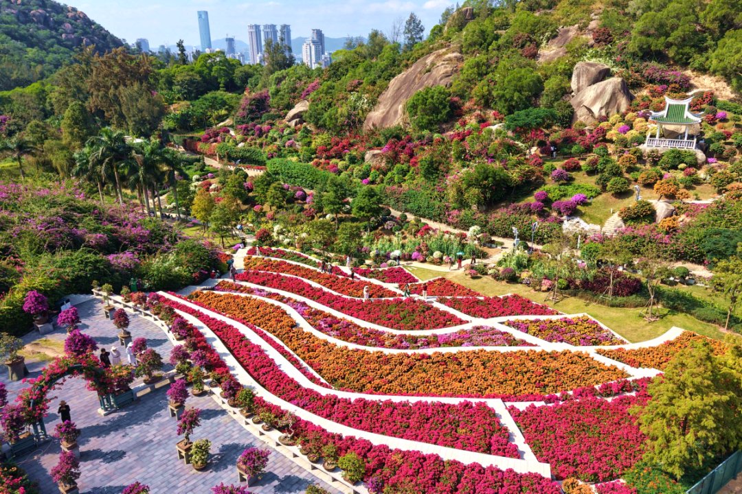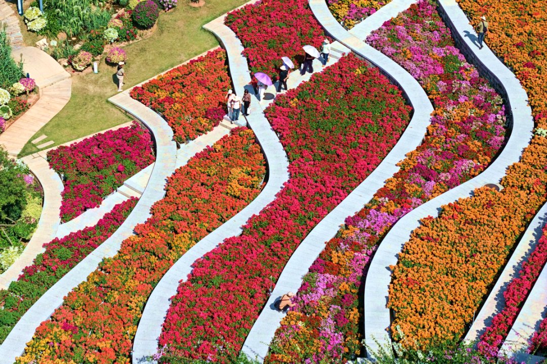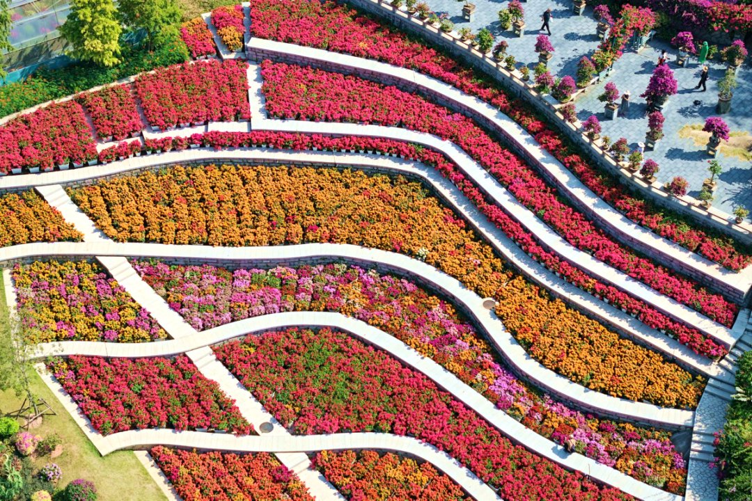 立冬时节,阳光和煦,百花齐放。在厦门市园林植物园的国家三角梅种质资源库,500余种三角梅在山谷间迎冬绽放,色彩斑斓的花瀑与梯田花海交织成诗,尽显初冬鹭岛的生机与活力。