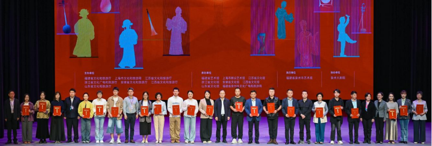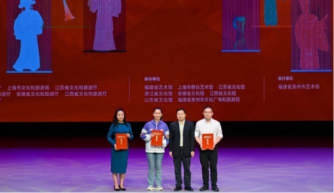 当晚,大赛颁奖晚会暨惠民演出在泉州大剧院精彩上演。福建省文化和旅游厅党组成员、副厅长吴新斌,上海市文化和旅游局副局长廖燕灵,江西省文化和旅游厅二级巡视员杨丁,泉州市人民政府副市长黄文捷,以及华东六省一市文旅系统相关领导嘉宾出席活动,并为获奖节目颁奖。