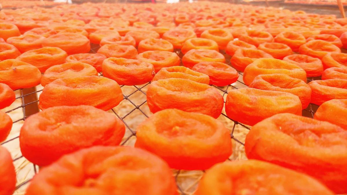 “每年秋收一结束,全家就围着柿饼转!”徐满娣笑着说,从挑拣饱满鲜柿、小心削皮,到反复摆晒、轻柔翻揉,再到密封捂霜等,一套工序下来要近1个月的时间。“这活急不得,每一步都得用心,你看这柿饼,底色深红、圆润饱满,咬一口软糯香甜,这都是晒出来的好味道。”