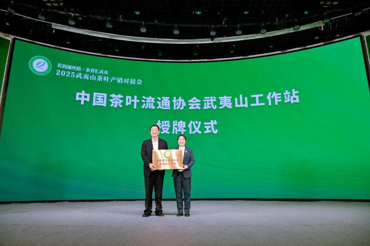 活动现场还举行了“中国茶叶流通协会武夷山工作站”授牌仪式,王庆会长为武夷山市供销合作社授牌。这一举措意味着武夷山茶产业将获得更专业的行业指导、更丰富的资源赋能,为海外市场拓展提供坚实平台支撑,进一步巩固武夷茶在全国茶产业中的核心地位。