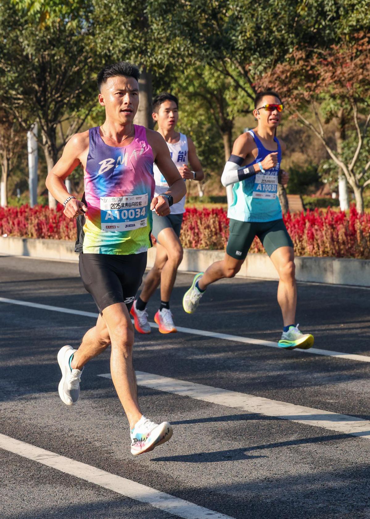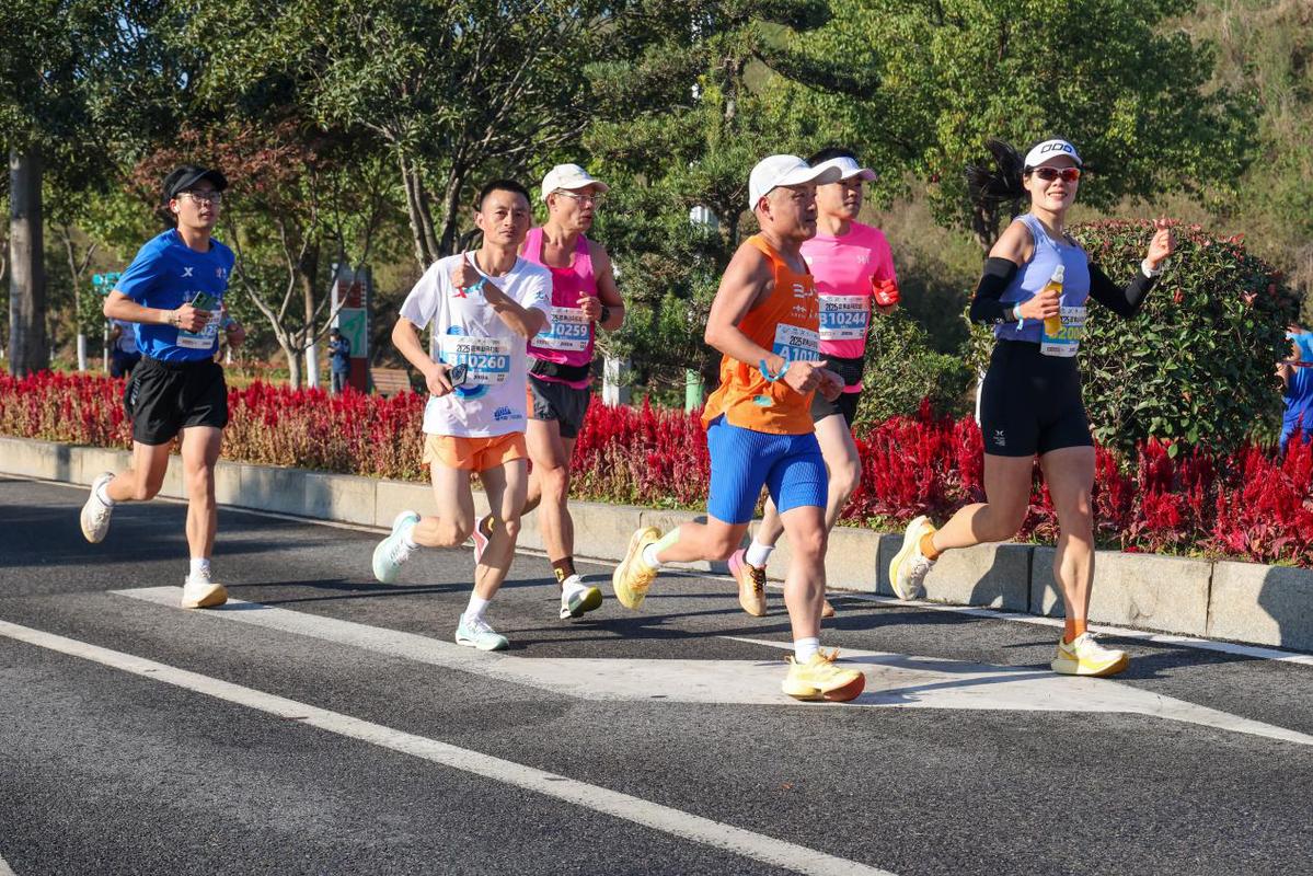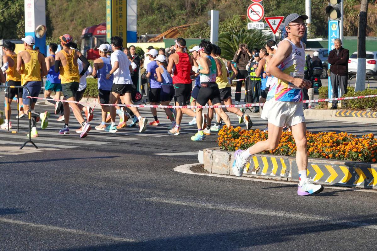 11月23日,参加2025武夷山马拉松赛的选手在马拉松赛道上赛跑。(邱汝泉 摄)