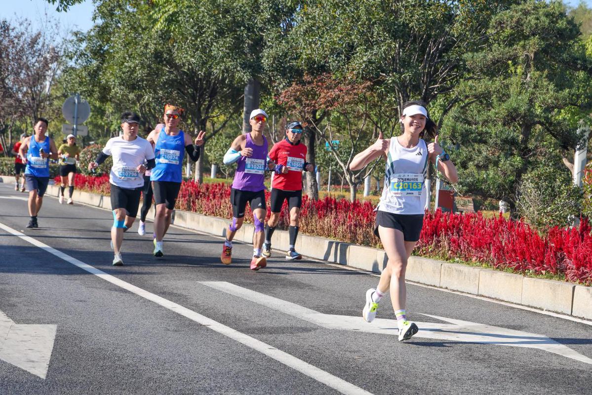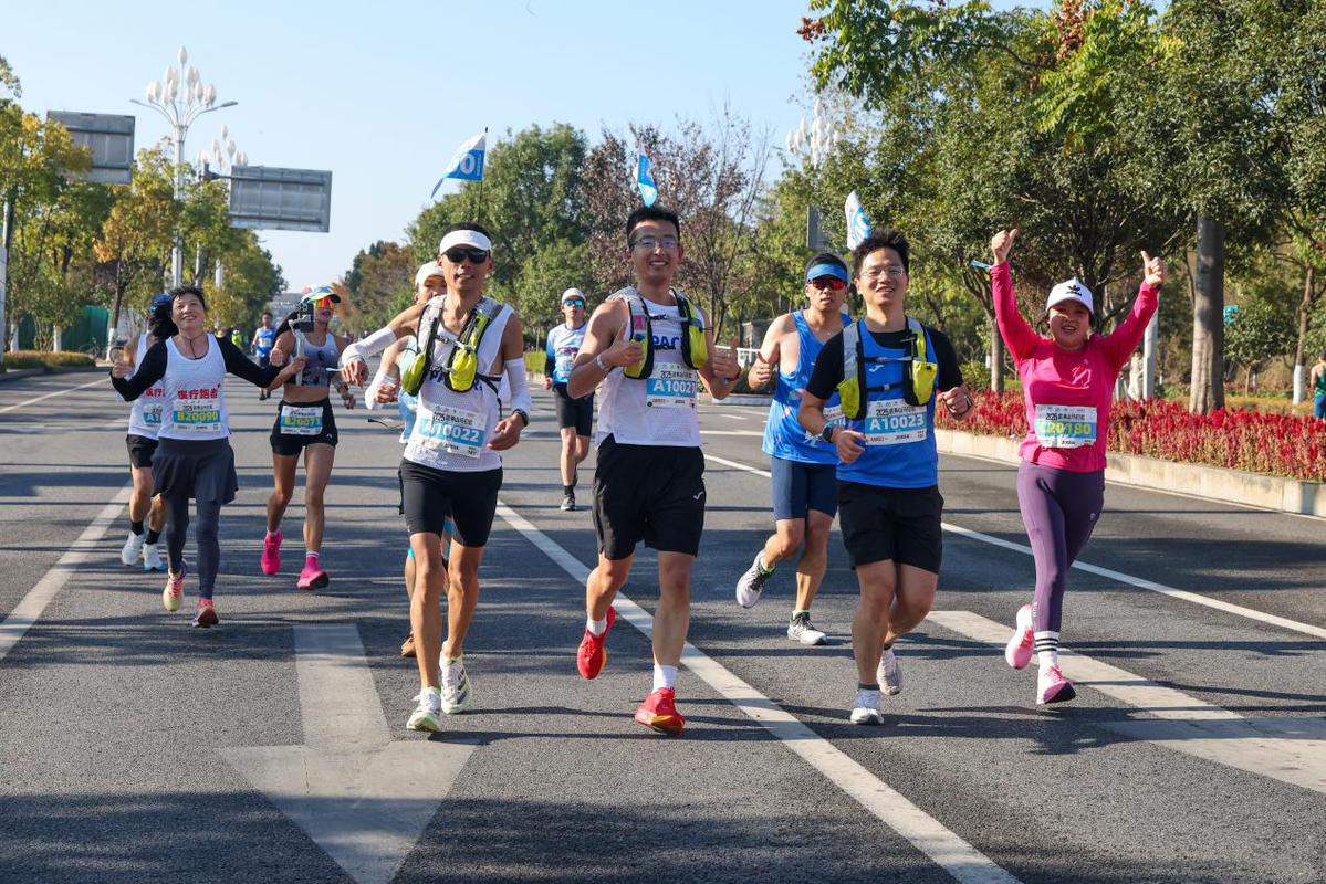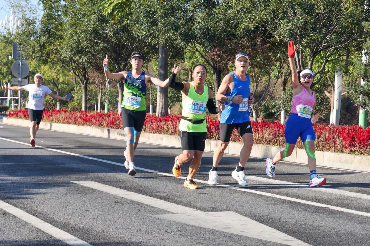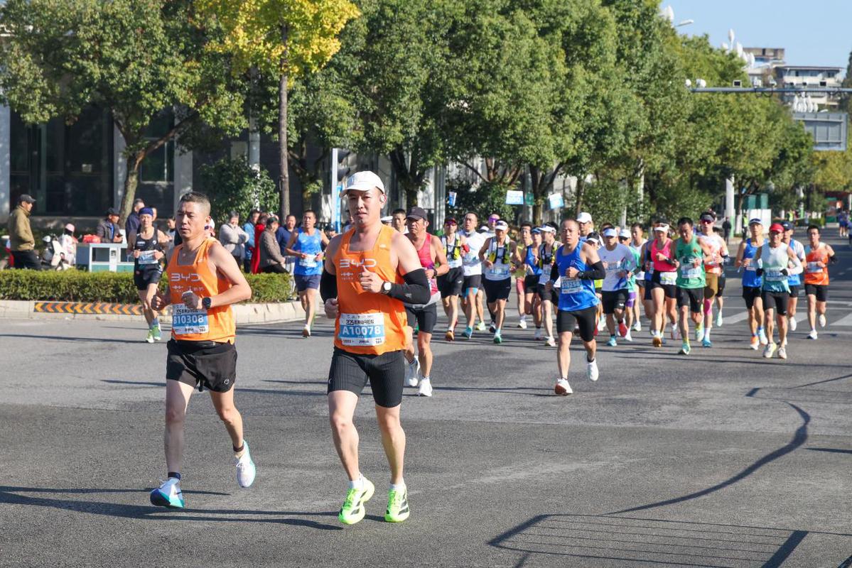 11月23日,参加2025武夷山马拉松赛的选手在马拉松赛道上赛跑。(邱汝泉 摄)