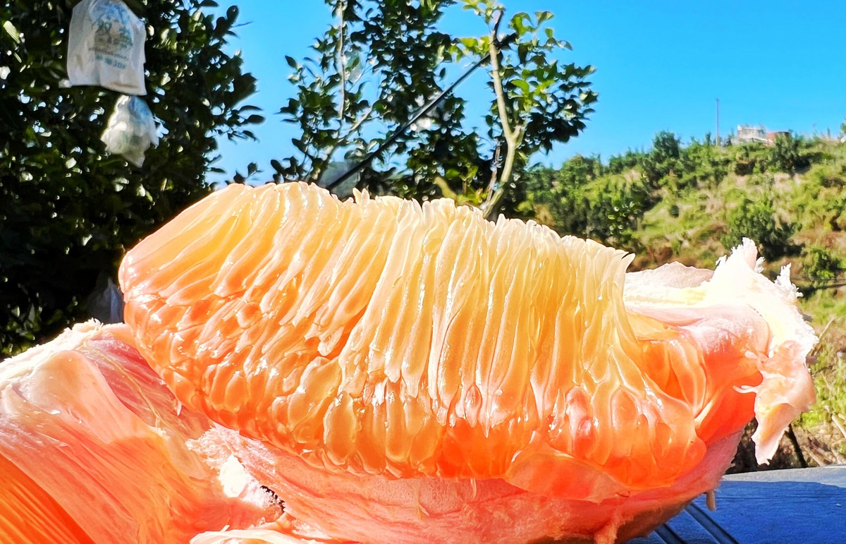 泰国青柚的种植并非易事,但肖志才凭借着对市场的敏锐洞察和不懈努力,逐渐掌握了这套“绿色密码”。这种原产泰国的短球形柚子,果肉粉红,糖度高达15-16度,较国内柚类更甜润多汁,且内膜无白化现象,耐贮运性强。更令肖志才看重的是其超长采摘期——从11月可持续到次年4月,完美避开传统蜜柚的集中上市高峰,市场行情稳定,价格优势显著。