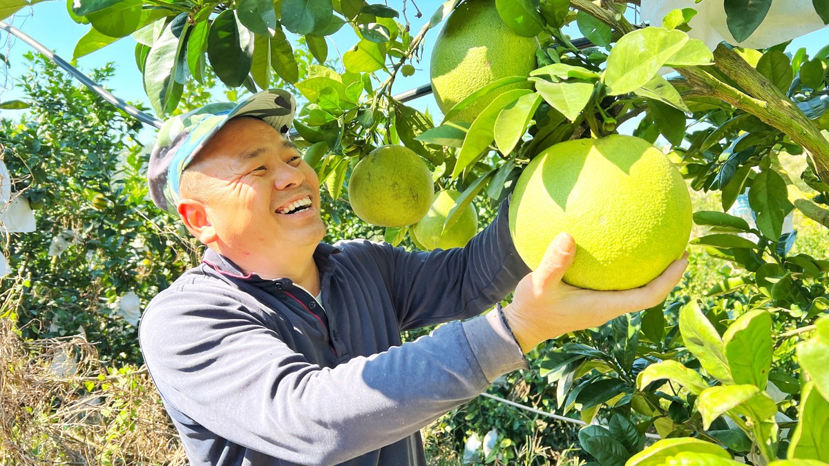 “对面那一片山,是我原来的传统蜜柚的种植基地,今年柚子行情不太好,基本在1块钱1斤,我想过完年后,把一片山的传统蜜柚也嫁接成泰国青柚。”肖志才说,“这不仅是为了提高收益,更是响应党的二十届四中全会关于分类推进乡村振兴、促进城乡融合发展的号召,通过产业结构调整,既能延长产业链条,提升农产品附加值,又能带动周边村民就业,实现‘家门口’增收。”
