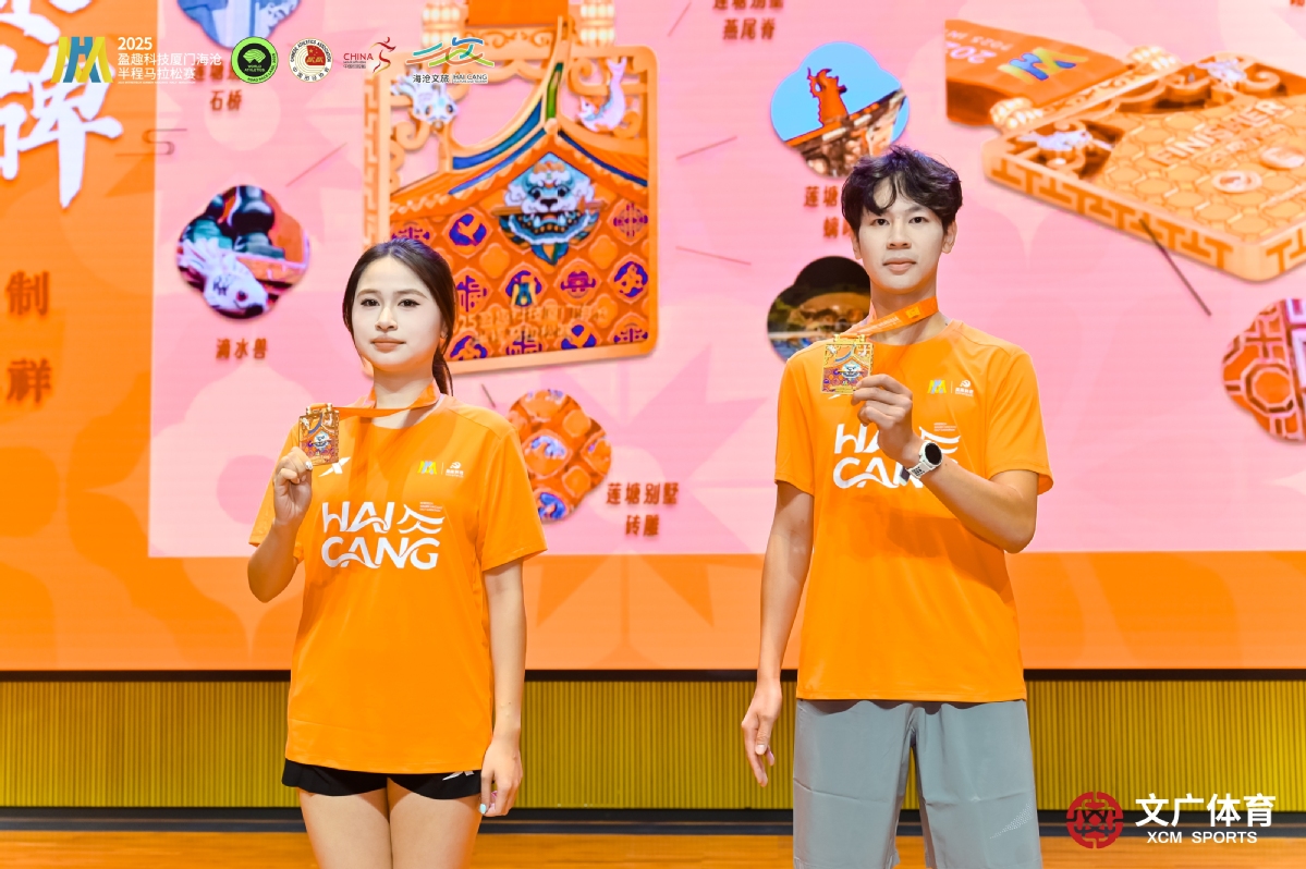 厦门文广体育有限公司总经理张华随后详细介绍了本届赛事的品牌亮点与筹备细节。历经八年沉淀,海沧半马已完成从中国田协金牌赛事到世界田联标牌赛事的升级。今年,赛事品牌形象迎来全面焕新,主视觉首次采用充满活力的橙色作为主色调,巧妙提取闽南古厝燕尾脊的优雅曲线与花砖的细腻肌理,实现了传统美学与现代设计的精彩对话。同时,赛事推出“造乐趣”的全新主题口号,诚挚邀请每一位跑者以“造乐合伙人”的身份,从奔跑、共创到分享,共同成为赛事乐趣的创造者。备受跑者关注的赛事奖牌与参赛服设计也一同揭晓。完赛奖牌是一件可佩戴的闽南文化符号,其设计灵感来源于海沧的百年建筑——莲塘别墅,采用经典的方形花砖造型,正面镌刻象征守护平安的闽南剑狮与寓意吉祥的滴水兽,将海沧的百年风华与真挚祝福凝聚于方寸之间。参赛服则以活力橙为主色,如清晨朝阳,正面融合“haicang”拼音字样,背面印有“造乐趣”口号,寓意开启一段活力的新征程。