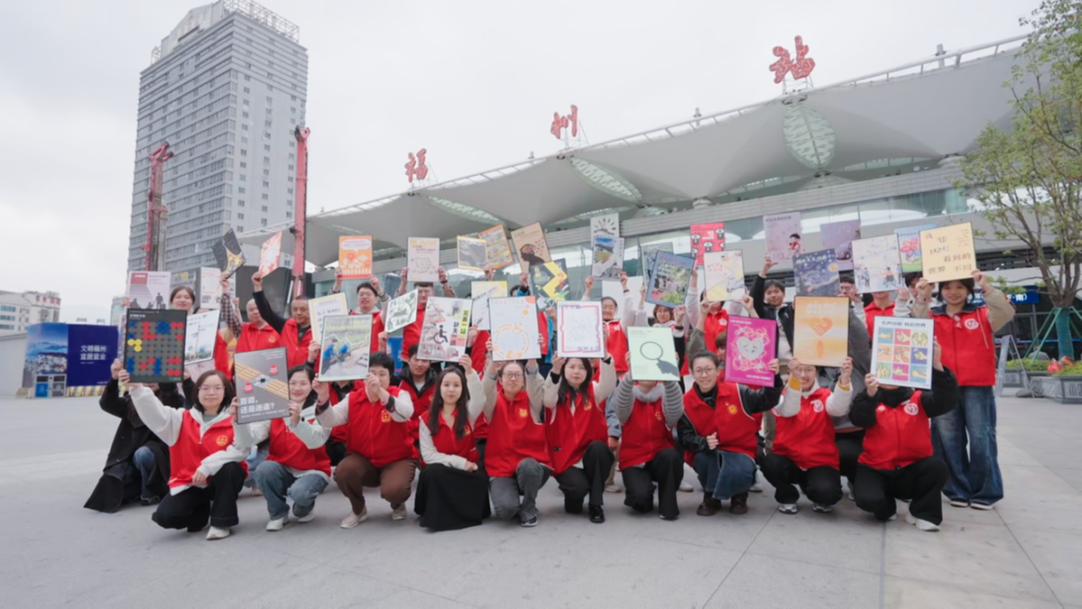 12月3日,在首个“福州助残周”暨第34个“国际残疾人日”来临之际,一场别开生面的快闪活动在福州火车站南广场温情上演。50余名来自海峡两岸的青年学子及志愿者手持无障碍主题海报,从四面八方迅速汇聚,以青春之力拉开“北京大学无障碍公益海报全国巡展·福州站”的序幕,吸引了众多旅客的驻足与点赞。