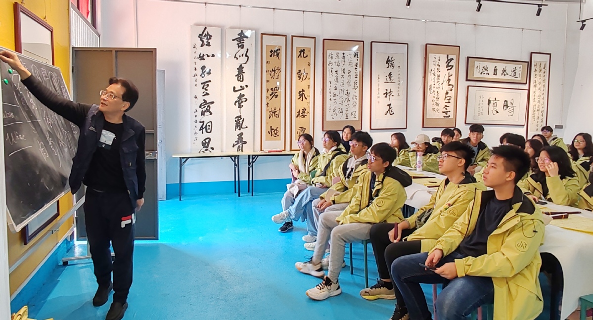 中国书法家协会理事、民革中央画院副秘书长王永昌在课堂授课。(刘永良)