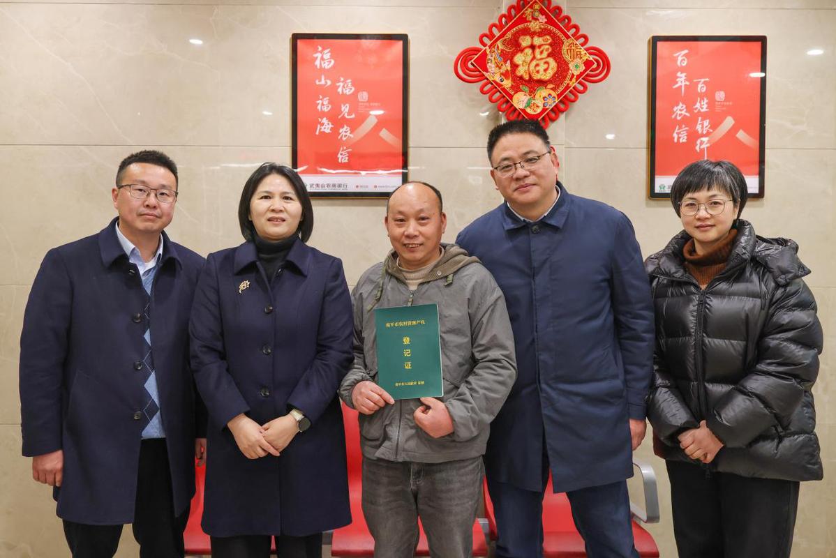 1月6日,武夷山银监局、武夷山农商银行、武夷山市农业农村局工作人员在吴屯乡给农村新型经营主体产权方式授信贷款。(邱汝泉 摄)