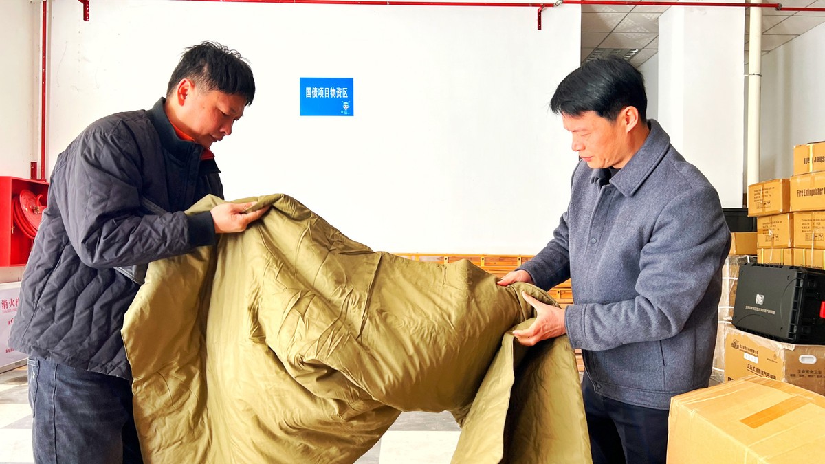 1月9日上午,在永定区救灾物资储备仓库,工作人员正对御寒物资进行紧张有序的分配调拨。经过清点、装车、签字等环节,500余件棉衣、棉被陆续被各乡镇(街道)工作人员领走。这批“暖心物资”将第一时间发往困难群众手中,在寒潮来临前筑起一道坚实的“民生防线”。