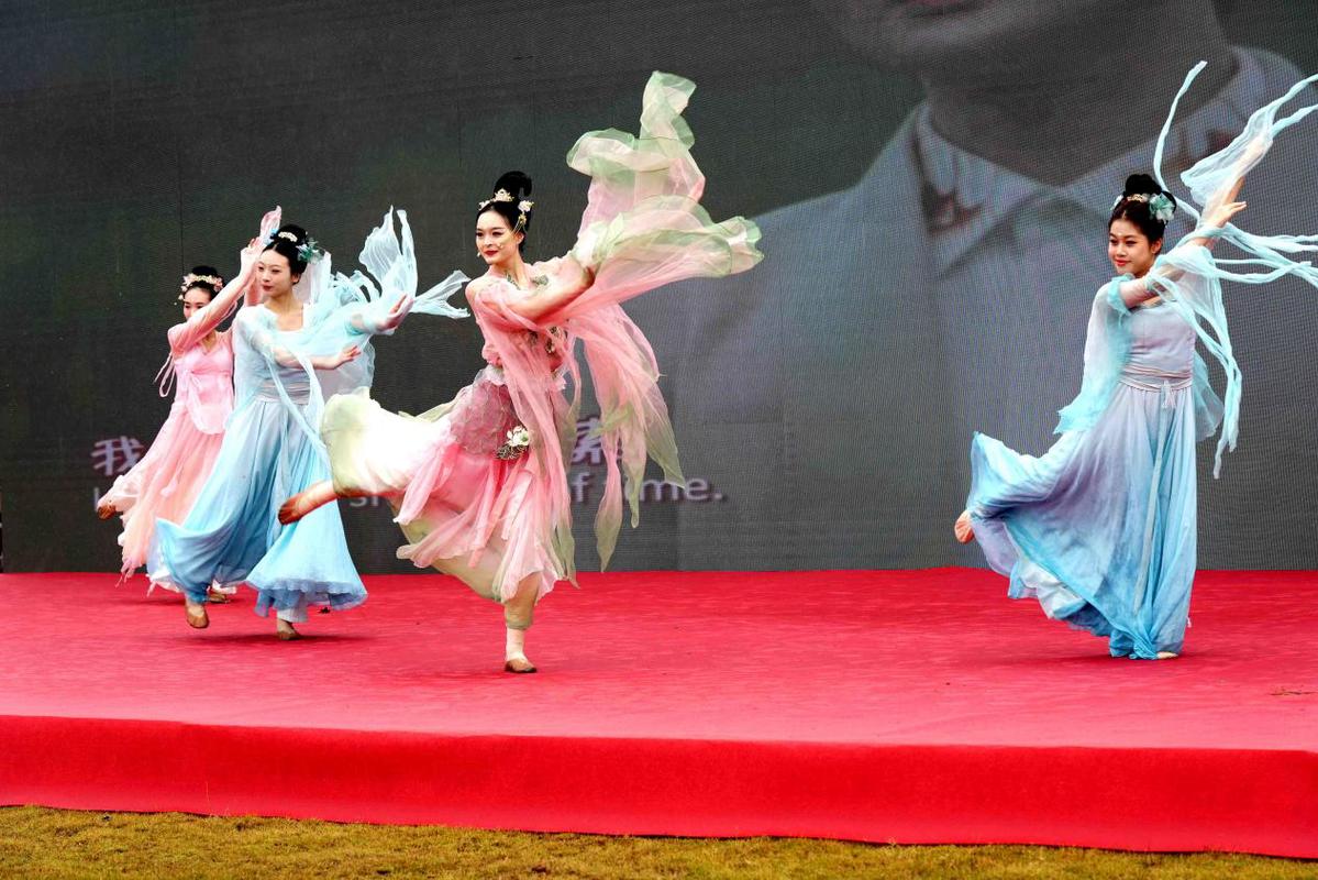 活动当天,龙潭“蝶恋花”营地内蝶舞花香、鼓乐齐鸣,《蝴蝶花开“遗”见龙潭》《福来福往 万印万福》等客家特色歌舞轮番上演,为活动拉开了精彩序幕。开幕式上,龙潭镇乡村振兴产业项目集中签约与“共富花场”分红仪式同步举行,蝴蝶兰深加工、生态旅游、农产品电商等6个重点项目成功签约,意向投资额超亿元;该镇8个村以“跨村联建”“村企共建”为纽带,通过“飞地”模式共建智能温室、盘活闲置土地打造种植基地,以温室租赁、集体资金入股龙头企业等方式,斩获54.7万元年度收益分红。一张张分红支票、一份份合作订单,让现场村民和商户笑逐颜开,切实共享产业发展的丰硕成果。